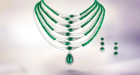 طقم من بوغوصيان Boghossian تستطيعي أن تختاري طقم بالسحر الملكي من علامة بوغوصيان، بفخامة الذهب الأبيض والماس وأحجار الزمرد الفاتنة .