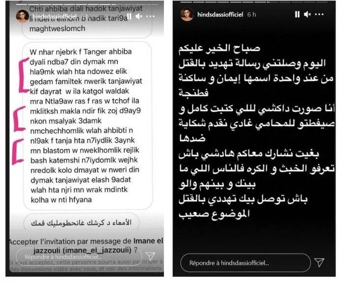 فاجأت الفنانة المغربية هند سداسي متابعيها عبر حساباتها في شبكات التواصل الاجتماعي بزواجها بعد يوم واحد على نشرها عبر رسائل تهديد بالقتل ذبحاً أمام عائلتها.