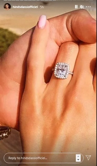 وشاركت ملكة جمال المغرب العربي لعام 2016 عبر حسابها الرسمي في تطبيق "أنستغرام" صورة يدها بيد عريسها الذي لك تكشف عن هويته، كما تضمّن منشورها خاتم الزواج المرصع بالألماس، كما نشرت تهاني معجبيها.