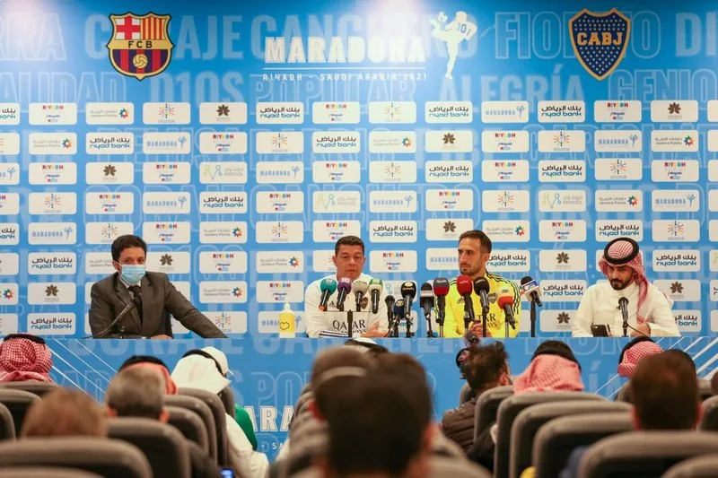 عقد مدربا فريقَي برشلونة الإسباني، وبوكا جونيورز الأرجنتيني، مؤتمراً صحافياً استباقياً لكأس مارادونا؛ إحدى الفعاليات المصاحبة لموسم الرياض 2021، التي تقام مباراتها اليوم الثلاثاء على ملعب مرسول بارك في العاصمة الرياض