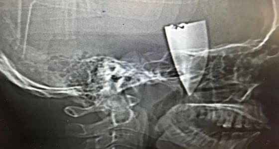 نجح بفضل الله فريق جراحي بمجمع الملك فيصل الطبي بمحافظة الطائف في إستخراج نصف سكين حادة من وجه شاب عشريني. بعد أن وصل في حالة طارئة إلى قسم الطوارئ ، حيث تم الكشف عليه واتضح انه مصاب بجرح قطعي في الجهة اليمنى من فروة الرأس بطول 10سم,وتم على الفور إجراء الاسعافات الاولية ، وبإجراء فحوصات إشعاعية إتضح وجود جسم غريب داخل مدفون بالأنسجة ، وممتد من فروة الرأس حتى اسفل القوس الوجيني الايمن مع إنعدام الحركة من الفك السفلي وأدخل الشاب إلى غرفة العمليات ، وقام فريق جراحي مكون من أطباء جراحة ووجه وفكين بالعمل على إستخراج الجسم الغريب الذي إتضح أنه عبارة قطعة نصف سكين طولها 7سم..وتمت العملية دون أي مضاعفات تؤثر على صحة الشاب.