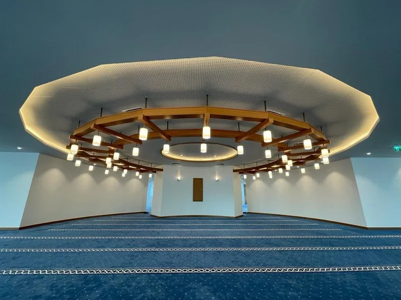 ويتسع المسجد لأكثر من 10 آلاف مصلٍ، ويضم قاعات متعددة، ومكتبة، عالمية وقاعة للمؤتمرات،ومركزاً لخدمة القرآن والسنة، بمساحة 41500 قدم مربع وبتكلفة 25 مليون دولار.