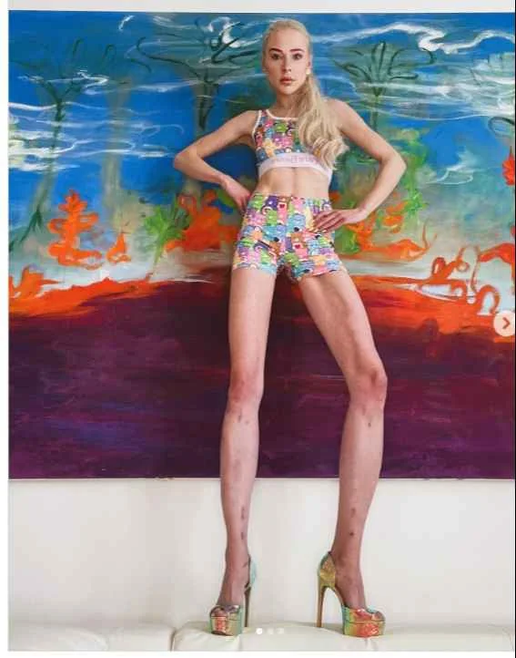وأوضحت عارضة الأزياء أنها خضعت لعمليتين لإدخال قضبان تلسكوبية في ساقيها يصل ارتفاعها إلى 6 أقدام “1.8288 متر”.